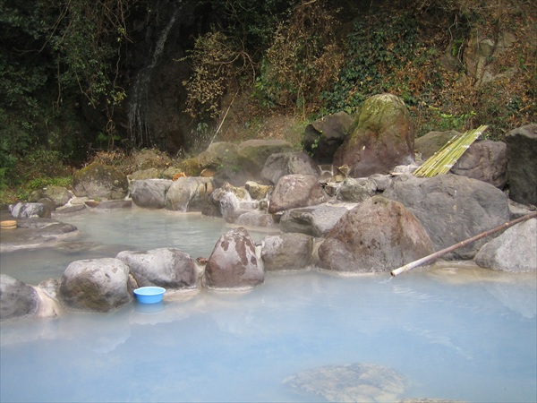 高温の源泉を自然冷却させて湯船に注ぐ正真正銘の源泉かけ流し。泉質はアルミニウム-硫酸塩泉で、独特の色の濁り湯。
