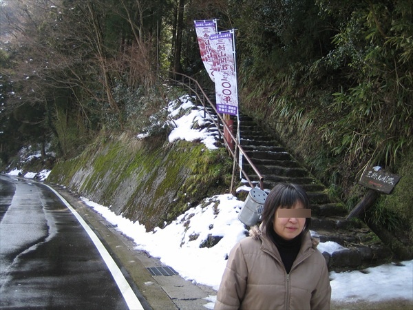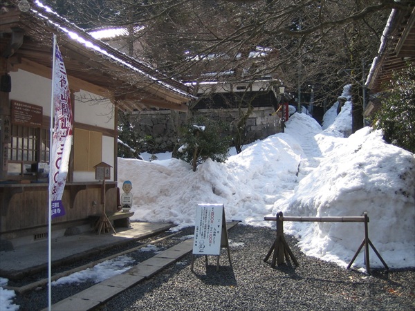 『投入堂』まで行くことに挑戦したが、ここからは400円必要であることと、この積雪では相当危険なため引き返すことに。
