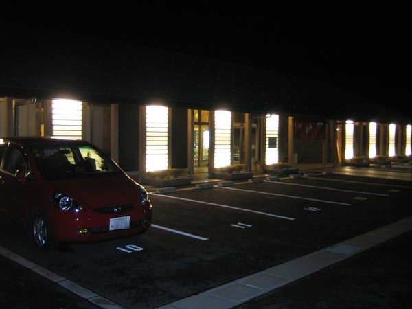 21:00 『ゆ~らく館(七釜温泉)』。泉質は薄茶色に濁ったナトリウム・カルシウム-硫酸塩泉で、なんと100%源泉かけ流し。住所:兵庫県新温泉町七釜524