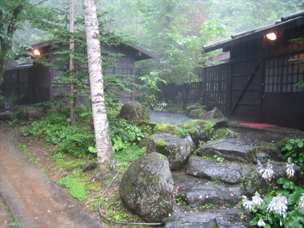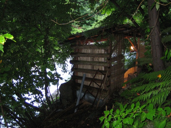 無料で見学できる平湯民俗館のエリアに侵入。その中に「平湯の湯」がある。