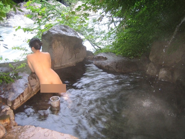 道を挟んだ向かいの駐車場から下りていくと露天風呂がある。