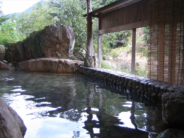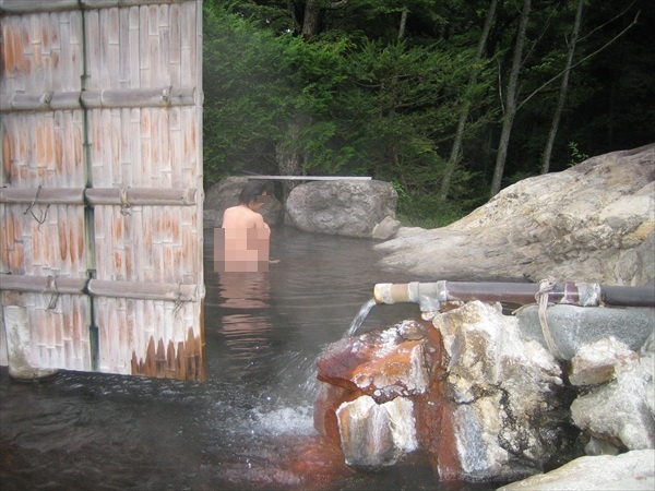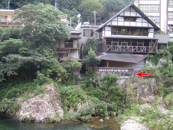 宇連川の対岸から見ると混浴露天風呂がよく見える。