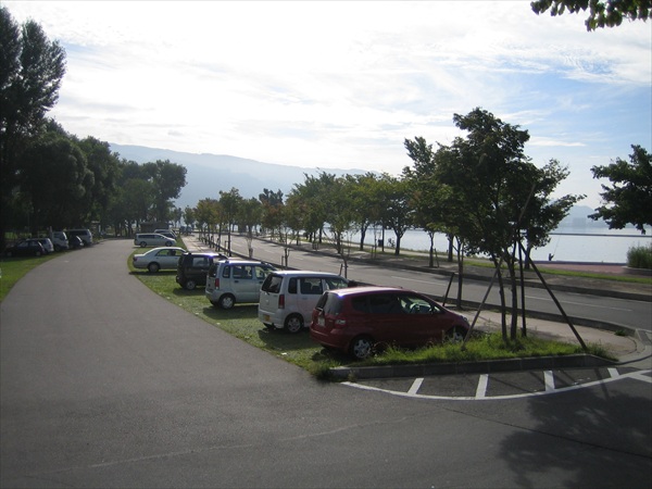 08:00 『諏訪湖みずべ公園駐車場』。昨夜はここで車中泊。