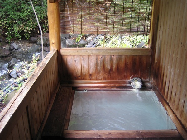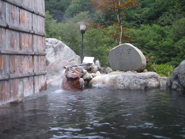 名物の大きな露天風呂は木製の仕切りで男女を分けているが、露天風呂の先端のほうでつながっており覗き込むと丸見えだし、どうかしたら行き来できるレベル。ということで準混浴といえる。泉質はアルカリ性単純温泉と単純温泉を注入しており源泉かけ流し。