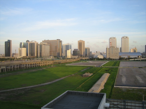 コストコホールセール幕張倉庫店の屋上駐車場から幕張のほうを眺める。