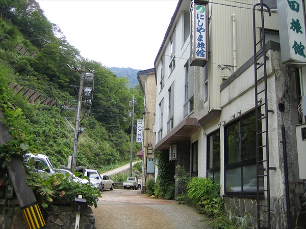 13:20 『にしやま旅館(中宮温泉)』の駐車場に到着。