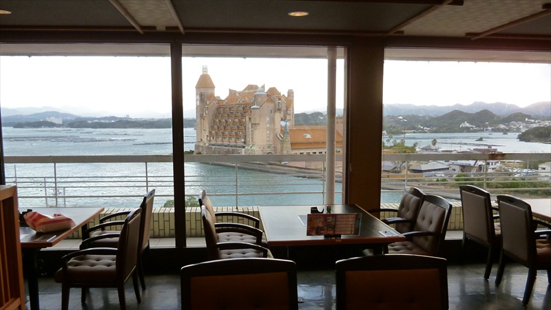 レストランからの眺望は海とホテル川久。ここはヨーロッパか!と言ってしまいそうな景色。