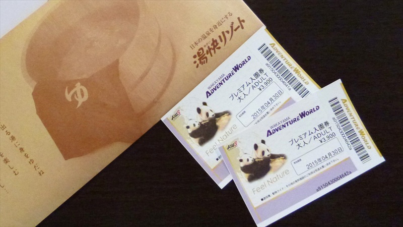 12:00 チェックアウト時にアドベンチャーワールドの入園券をもらうことができた。有効期限は来年の4月30日まで。今日は寒いので後日また南紀白浜に来た時に利用しようと思う。