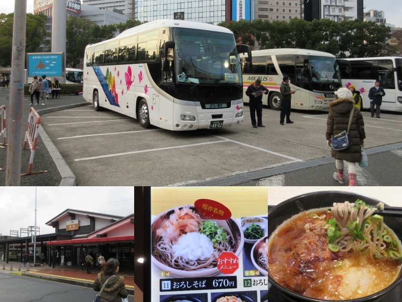 07:50に新大阪に集合し出発する。11:45頃『南条S.A』で休憩。そこで昼食として【福井名物おろしそば/670円】を食べる。