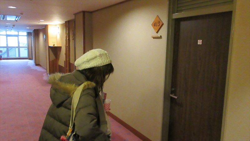 部屋は本館413号室。シリンダータイプの鍵を開ける。