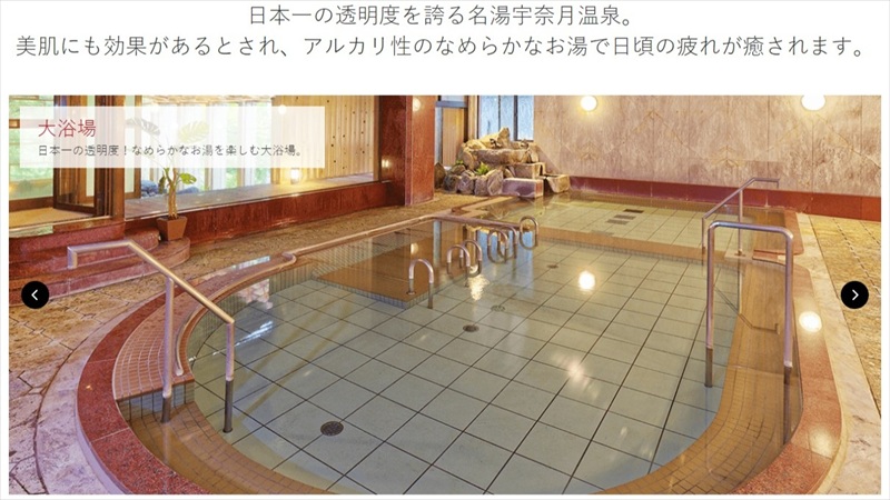 温泉は日本一の透明度を誇る名湯。循環されているもののアルカリ性で気持ちがいい。