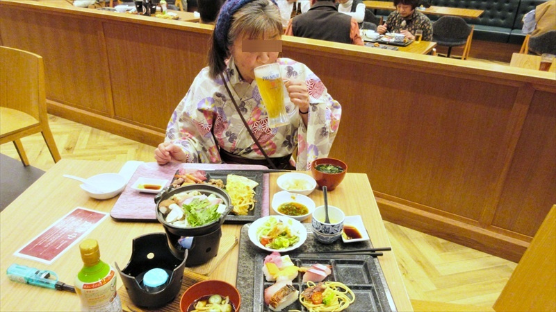 もちろん生ビールがすすむ。ちなみに朝食も同じ場所。