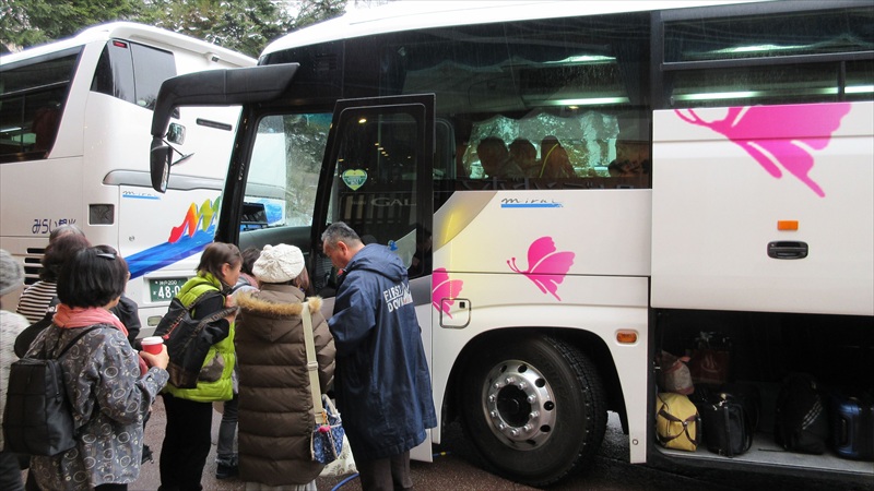 13:00 大阪までの直行バスに乗り込む。昼食については朝食バイキングでたらふく食べてお腹が空いていないので、帰るまで何も食べないでも大丈夫。