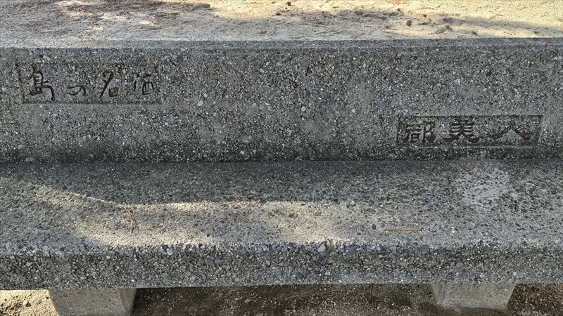 公園内には島の名酒「都美人」提供のセメント椅子がある。