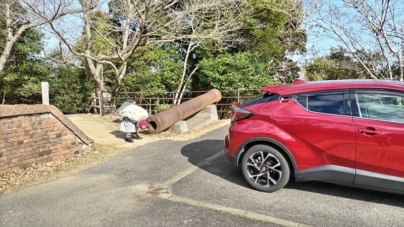 『第一砲台跡』は第二駐車場から徒歩ですぐ。車道沿いにあって見学しやすい。
