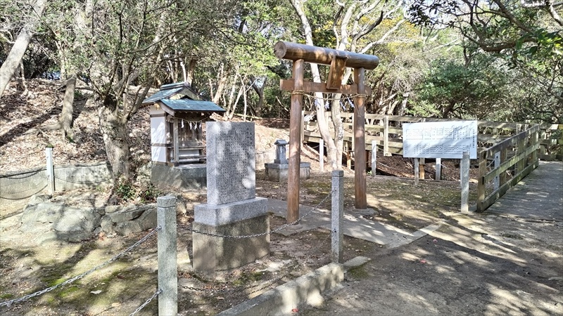 『第四砲台跡』。第一駐車場から徒歩ですぐのところにあり、車道沿いにあって見学しやすい。ちなみに第二、第三、第五砲台跡は柵が張り巡らされてあって立ち入り禁止となっていた。