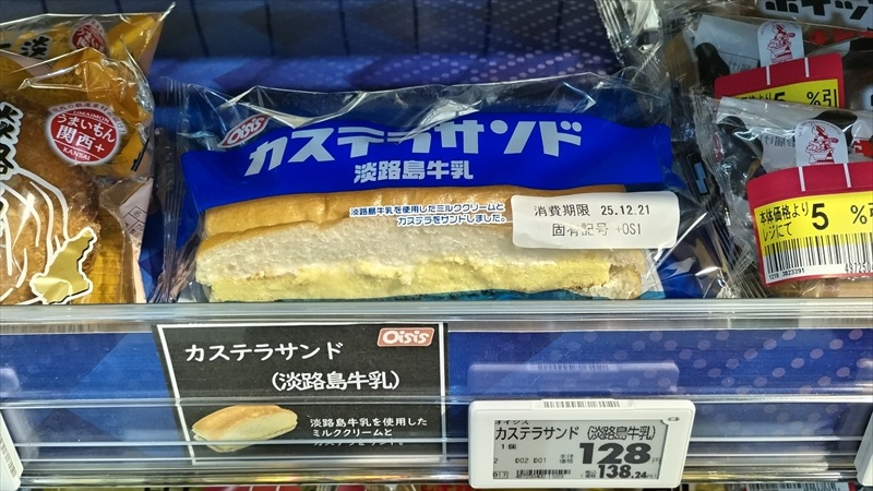 イオンスタイル洲本で【カステラサンド淡路島牛乳/138円】を買う。